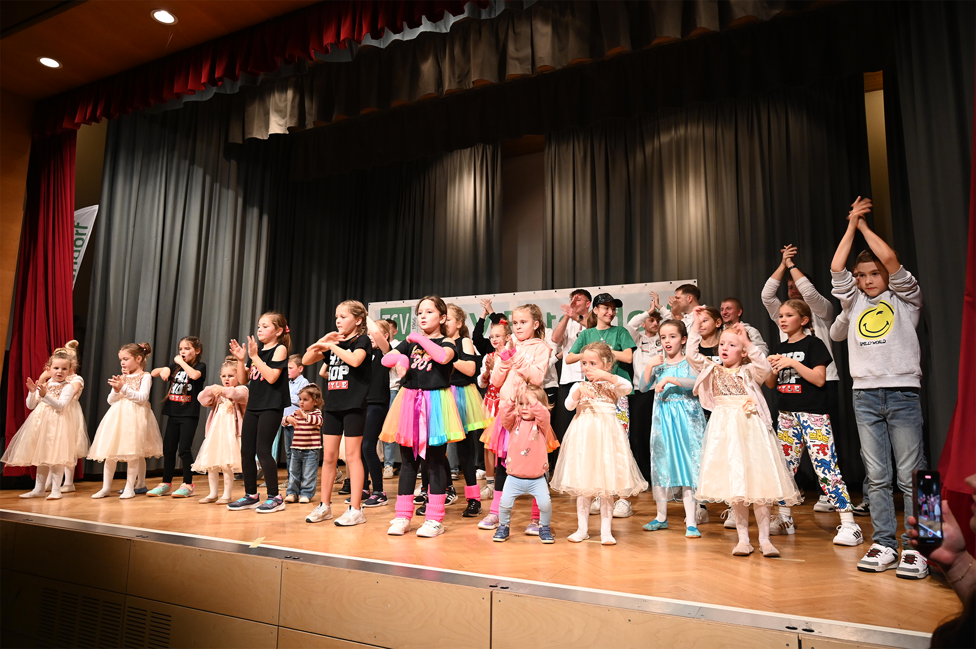 Die Feier endete mit der legendären Kinderdisco, bei der Angelina Galozi und Conny Sturm noch einmal alle auf die Tanzfläche brachten. Selbst Fußballer ließen sich mitreißen und tanzten mit den jungen Tänzerinnen auf der Bühne.
